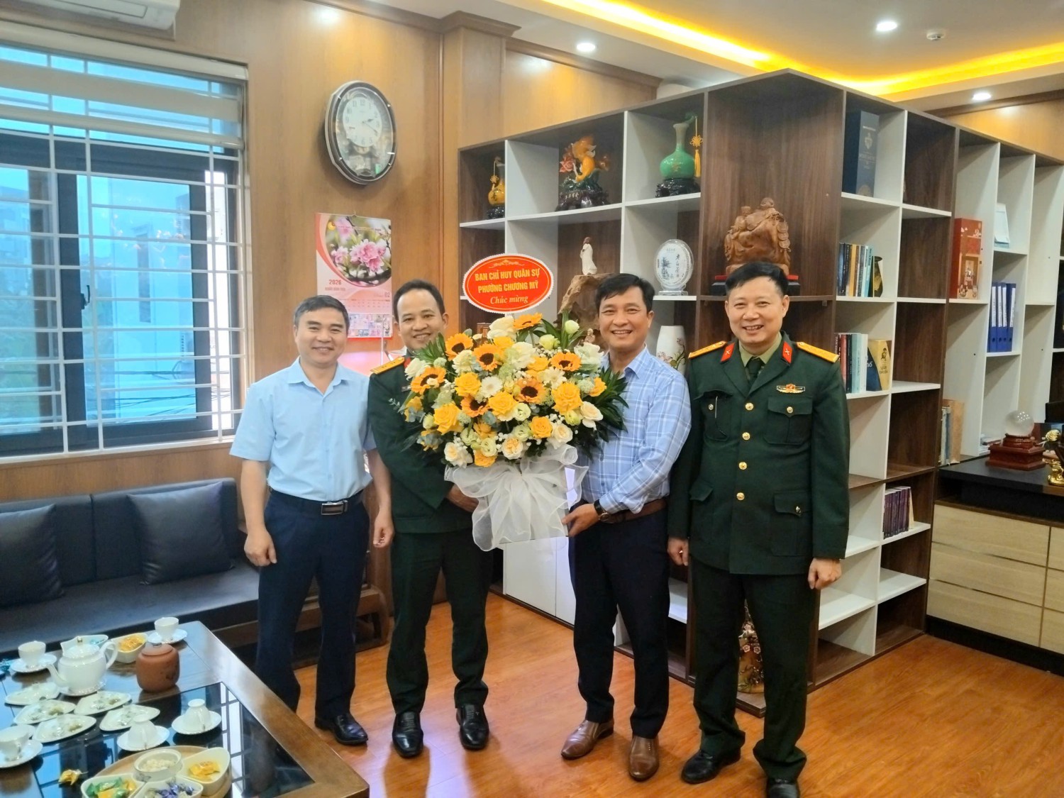 Ban Chỉ Huy Quân Sự phường Chương Mỹ tặng hoa chúc mừng Trạm Y tế nhân Kỷ niệm 71 năm ngày Thầy thuốc Việt Nam