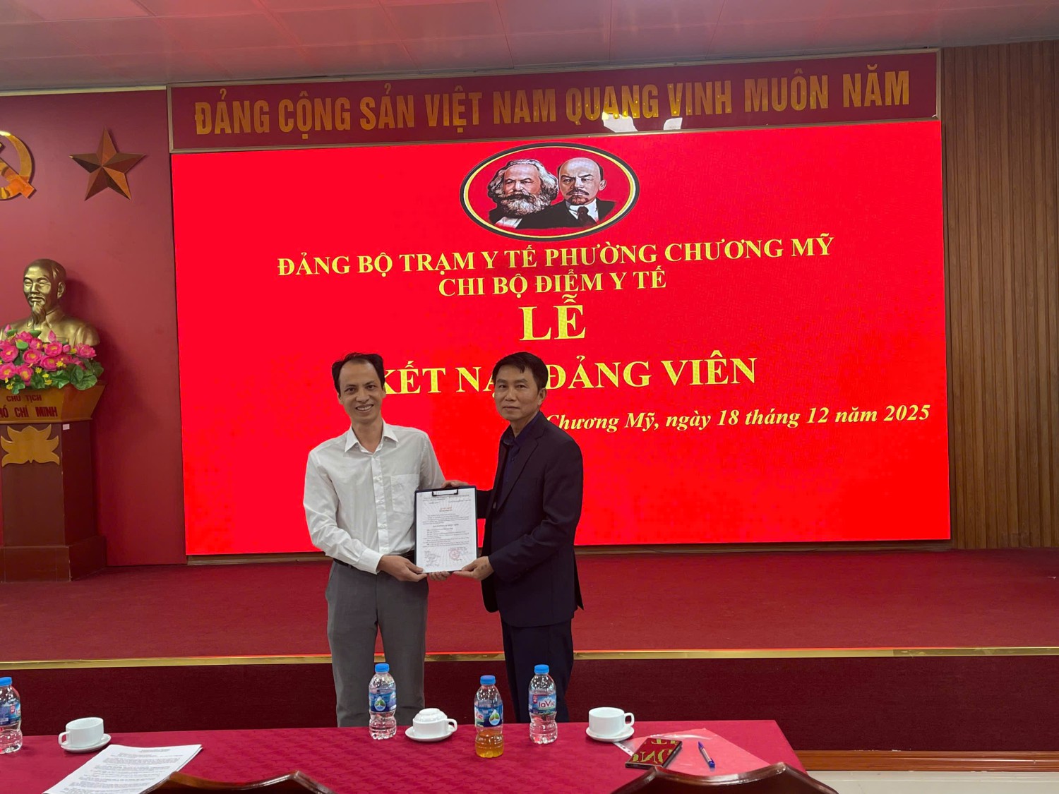 Công tác phát triển đảng viên là nhiệm vụ thường xuyên, có ý nghĩa đặc biệt quan trọng trong công tác xây dựng Đảng, góp phần tăng cường sức chiến đấu, bảo đảm sự kế thừa và phát triển liên tục của tổ chức Đảng. Trong không khí phấn khởi, trang nghiêm và đầy ý nghĩa, chiều ngày 17/12/2025 Chi bộ Phòng bệnh và Khám chữa bệnh long trọng tổ chức Lễ kết nạp đảng viên mới, đánh dấu một bước trưởng thành quan trọng của quần chúng Tống Văn Hùng và Lê Thị Thanh sau quá trình rèn luyện, phấn đấu không ngừng.