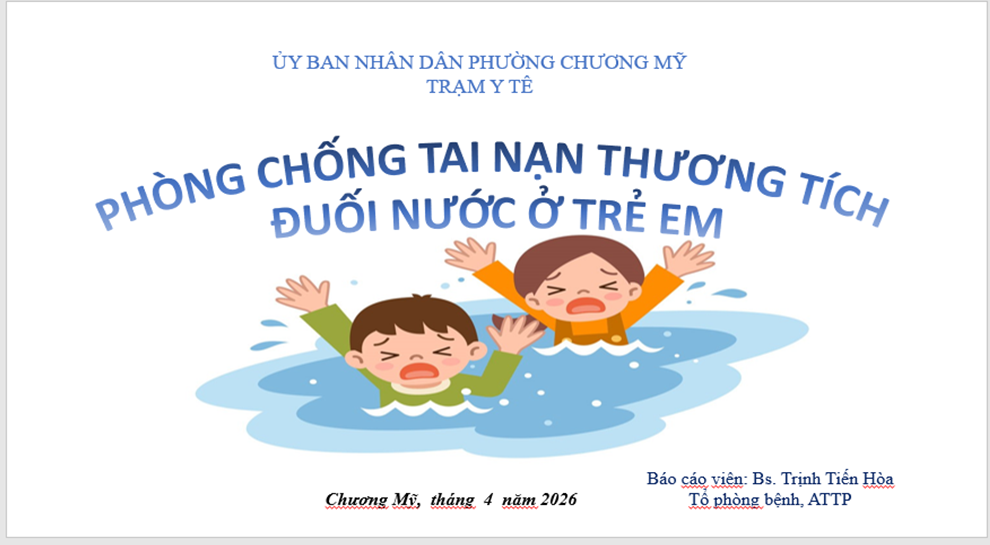 Thực hiện kế hoạch Truyền thông kiến thức phòng, chống đuối nước, hướng dẫn kỹ thuật sơ cấp cứu đưới nước, vệ sinh môi trường, vệ sinh học đường và các biện pháp phòng chống dịch cho giáo viên và học sinh tại các trường học. Từ ngày 13/4 đến ngày 23/4/2026 Trạm Y tế phường Chương Mỹ đã tổ chức truyền thông "Kiến thức phòng, chống đuối nước, hướng dẫn kỹ thuật sơ cấp cứu đuối nước cho giáo viên và học sinh tại các trường học trên địa bàn phường".