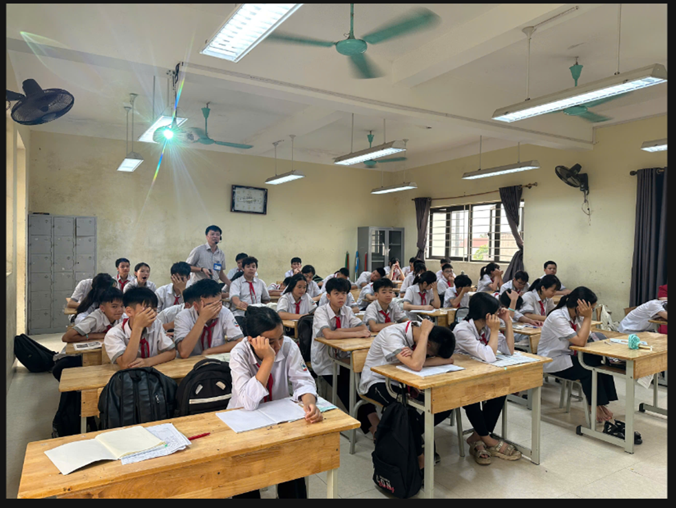 Giáo viên và học sinh trường THCS Chúc Sơn tham gia buổi truyền thông