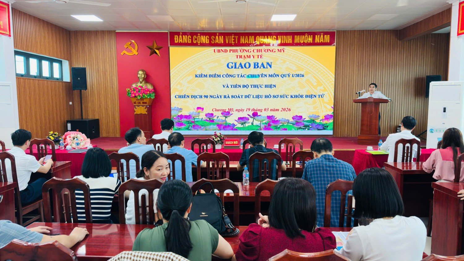 TRẠM Y TẾ PHƯỜNG CHƯƠNG MỸ TỔ CHỨC GIAO BAN KIỂM ĐIỂM CÔNG TÁC CHUYÊN MÔN QUÝ I/2026 VÀ TRIỂN KHAI TIẾN ĐỘ CHIẾN DỊCH 90 NGÀY RÀ SOÁT DỮ LIỆU HỒ SƠ SỨC KHỎE ĐIỆN TỬ