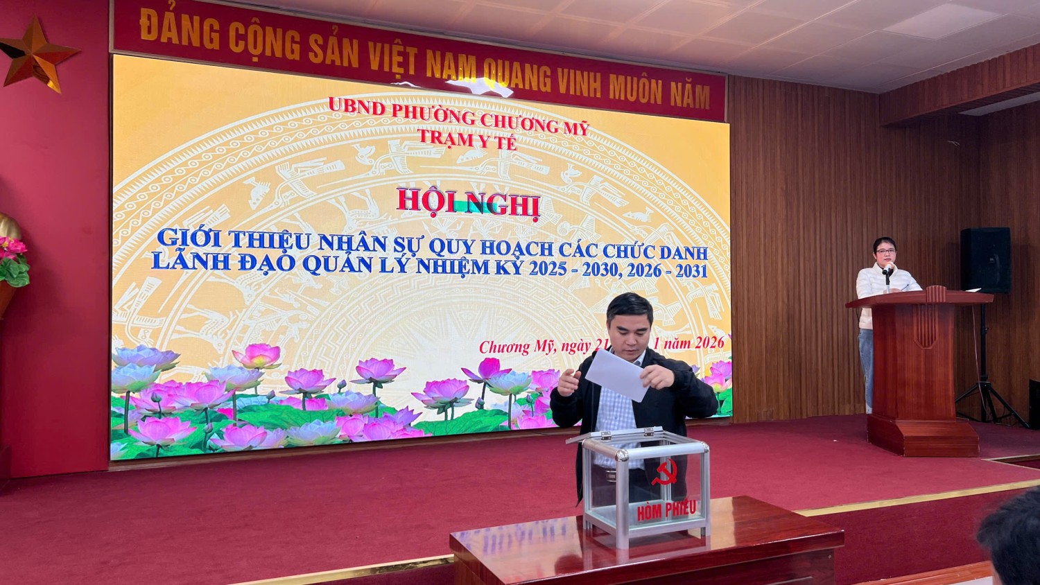 Thực hiện Kế hoạch số 48-KH/ĐU ngày 13/01/2026 của Đảng ủy phường Chương Mỹ về việc thực hiện rà soát, bổ sung quy hoạch nhiệm kỳ 2025-2030, 2026-2031. Trạm y tế phường Chương Mỹ tổ chức Hội nghị lấy phiếu giới thiệu nhân sự quy hoạch các chức danh lãnh đạo, quản lý nhiệm kỳ 2025-2030 và 2026-2031.