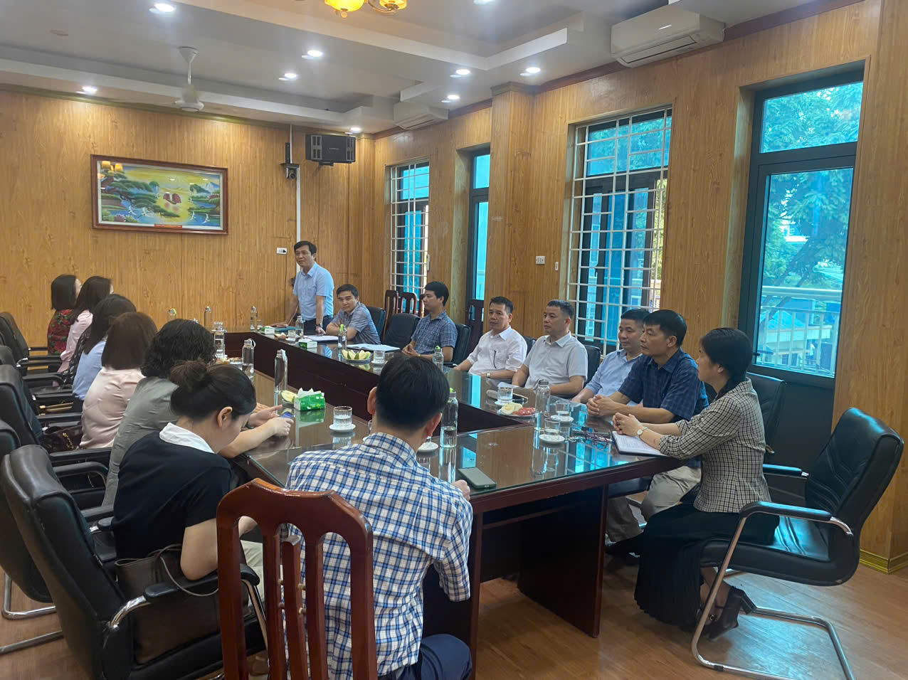 Phát biểu tại buổi làm việc, đồng chí Dương Mạnh Hùng – Giám đốc Trạm Y tế phường Chương Mỹ đã giới thiệu khái quát về tình hình hoạt động của đơn vị, đồng thời chia sẻ những kinh nghiệm thực tiễn trong tổ chức triển khai các chương trình y tế, phòng chống dịch bệnh, tiêm chủng, công tác rà soát, cập nhật dữ liệu hồ sơ sức khỏe điện tử và đổi mới hình thức truyền thông phù hợp với đặc thù địa phương.