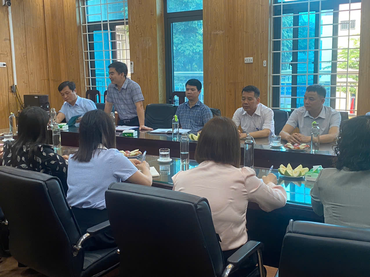 Đồng chí Dương Mạnh Hùng – Giám đốc Trạm Y tế phường Chương Mỹ phát biểu tại buổi làm việc